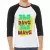 features raglan 3/4 sleeves and a modern fit that is perfect for a day