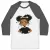features raglan 3/4 sleeves and a modern fit that is perfect for a day