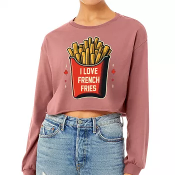 I Love French Fries Cropped Long Sleeve T-Shirt – Cool Food Women’s T-Shirt – Digital Art Long Sleeve Tee