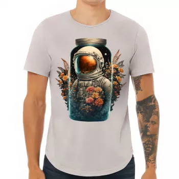 Astronaut Print Curved Hem T-Shirt – Floral T-Shirt – Illustration Curved Hem Tee