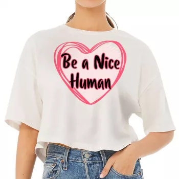 Be a Nice Human Women’s Crop Tee Shirt – Heart Print Cropped T-Shirt – Graphic Crop Top