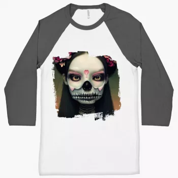 Skeleton Girl Baseball T-Shirt – Gothic T-Shirt – Artwork Tee Shirt