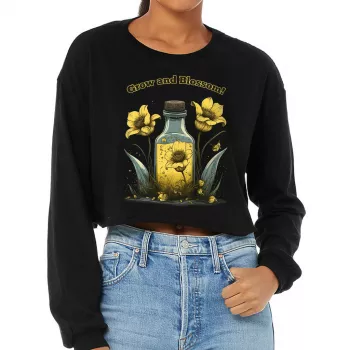 Yellow Flowers Cropped Long Sleeve T-Shirt – Grow and Blossom Women’s T-Shirt – Art Long Sleeve Tee