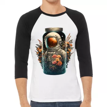 Astronaut Print Baseball T-Shirt – Floral T-Shirt – Illustration Baseball Tee