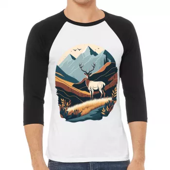 Nature Print Baseball T-Shirt – Deer T-Shirt – Landscape Baseball Tee