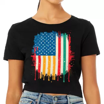 USA Flag Women’s Cropped T-Shirt – Creative Crop Top – Patriotic Cropped Tee