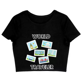 World Traveler Women’s Cropped T-Shirt – Unique Crop Top – Art Cropped Tee