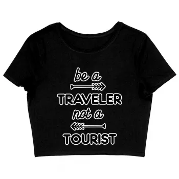 Be a Traveler Not a Tourist Women’s Cropped T-Shirt – Cool Design Crop Top – Unique Cropped Tee