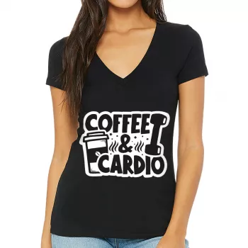 Coffee and Cardio Women’s V-Neck T-Shirt – Graphic V-Neck Tee – Themed T-Shirt