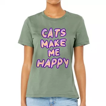 Cats Make Me Happy Women’s T-Shirt – Cute T-Shirt – Best Design Relaxed Tee