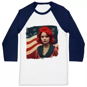 Girl Red Hair American Long Sleeve T-Shirt – Patriotic T-Shirt – Art Long Sleeve Tee Shirt