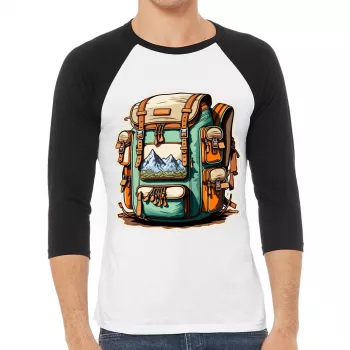 Backpack Print Baseball T-Shirt – Travel Lover T-Shirt – Mountain Baseball Tee