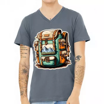 Backpack Print V-Neck T-Shirt – Travel Lover T-Shirt – Mountain V-Neck Tee