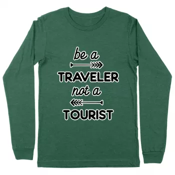 Be a Traveler Not a Tourist Long Sleeve T-Shirt – Cool Design T-Shirt – Unique Long Sleeve Tee