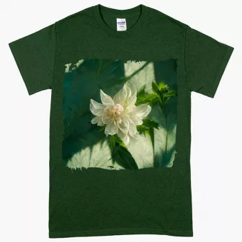 White Dahlia Flower Heavy Cotton T-Shirt – Art Tee Shirt – Printed T-Shirt