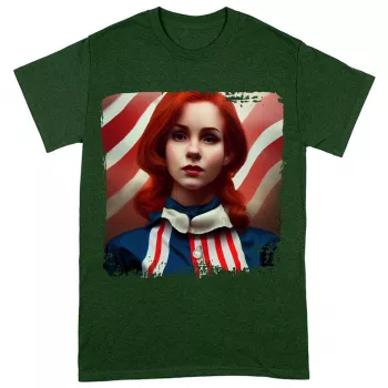 Girl Red Hair American Heavy Cotton T-Shirt – Patriotic Tee Shirt – Art T-Shirt