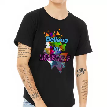 Believe in Yourself Curved Hem T-Shirt – Motivational T-Shirt – Illustration Curved Hem Tee