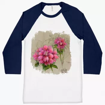 Pink Dahlia Flower Baseball T-Shirt – Painted T-Shirt – Graphic Tee Shirt