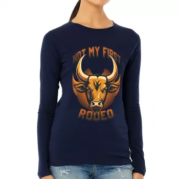 Not My First Rodeo Women’s Long Sleeve T-Shirt – Bull Design Long Sleeve Tee – Cool Graphic T-Shirt