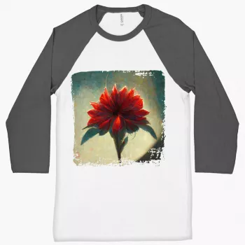 Red Dahlia Flower Baseball T-Shirt – Art T-Shirt – Graphic Tee Shirt