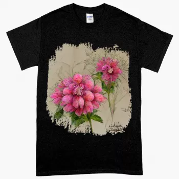 Pink Dahlia Flower Heavy Cotton T-Shirt – Painted Tee Shirt – Graphic T-Shirt