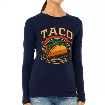 Taco Print Women’s Long Sleeve T-Shirt – Food Long Sleeve Tee – Cool Graphic T-Shirt