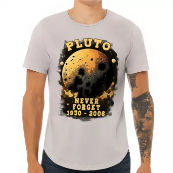 Pluto Never Forget Curved Hem T-Shirt – Space T-Shirt – Trendy Curved Hem Tee