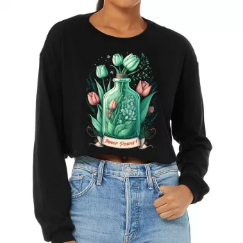 Tulip Print Cropped Long Sleeve T-Shirt – Inner Power Women’s T-Shirt – Colorful Long Sleeve Tee