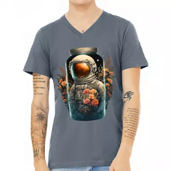 Astronaut Print V-Neck T-Shirt – Floral T-Shirt – Illustration V-Neck Tee