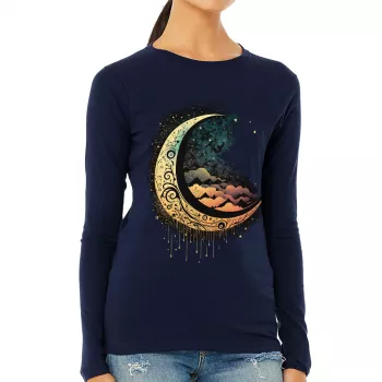 Moon Graphic Women’s Long Sleeve T-Shirt – Cool Art Long Sleeve Tee – Printed T-Shirt