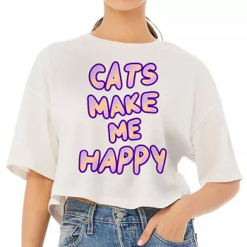 Cats Make Me Happy Women’s Crop Tee Shirt – Cute Cropped T-Shirt – Best Design Crop Top