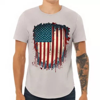 Patriotic Design Curved Hem T-Shirt – American Flag T-Shirt – Trendy Curved Hem Tee