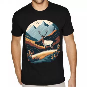 Nature Print Sueded T-Shirt – Deer T-Shirt – Landscape Sueded Tee