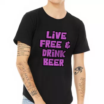 Live Free Curved Hem T-Shirt – Drink Beer T-Shirt – Cool Curved Hem Tee