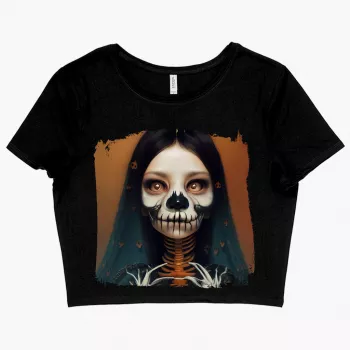 Creepy Girl Women’s Cropped T-Shirt – Gothic Print Crop Top – Skeleton Crop Tee Shirt