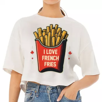 I Love French Fries Women’s Crop Tee Shirt – Cool Food Cropped T-Shirt – Digital Art Crop Top