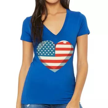 Flag Heart Women’s V-Neck T-Shirt – USA Flag V-Neck Tee – Patriotic T-Shirt