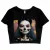 Cool Skeleton Women’s Cropped T-Shirt – Floral Crop Top – Halloween Print Crop Tee Shirt