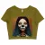 Creepy Girl Women’s Cropped T-Shirt – Gothic Print Crop Top – Skeleton Crop Tee Shirt