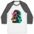features raglan 3/4 sleeves and a modern fit that is perfect for a day