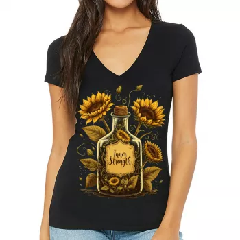 Sunflower Women’s V-Neck T-Shirt – Inner Strength V-Neck Tee – Colorful T-Shirt