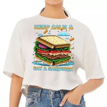 Sandwich Women’s Crop Tee Shirt – Keep Calm Cropped T-Shirt – Funny Quote Crop Top