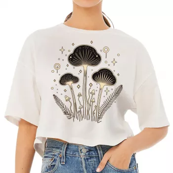 Magic Mushroom Women’s Crop Tee Shirt – Cool Art Cropped T-Shirt – Printed Crop Top