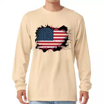 USA Flag Long Sleeve T-Shirt – Patriotic T-Shirt – Trendy Long Sleeve Tee