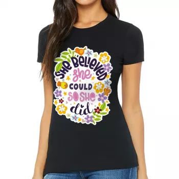 She Believed She Could So She Did Slim Fit T-Shirt – Inspirational Women’s T-Shirt – Printed Slim Fit Tee