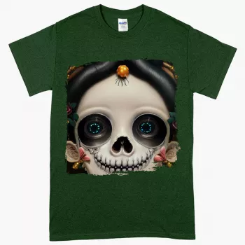 Sugar Skull Heavy Cotton T-Shirt – Floral Tee Shirt – Skeleton Girl T-Shirt