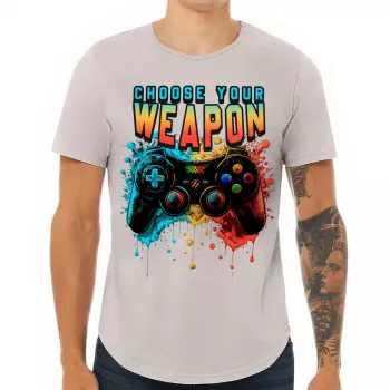 Choose Your Weapon Curved Hem T-Shirt – Gamer T-Shirt – Cool Art Curved Hem Tee