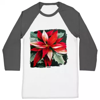 Plant Print Baseball T-Shirt – Poinsettia T-Shirt – Plant Baseball Tee