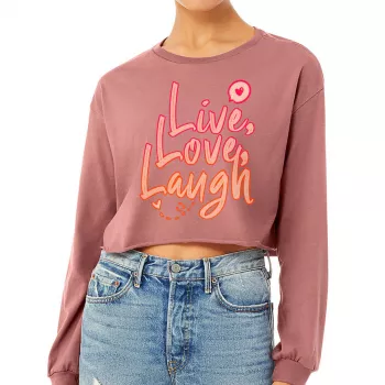Live Laugh Love Cropped Long Sleeve T-Shirt – Cute Design Women’s T-Shirt – Printed Long Sleeve Tee