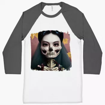 Cool Skeleton Baseball T-Shirt – Floral T-Shirt – Halloween Print Tee Shirt